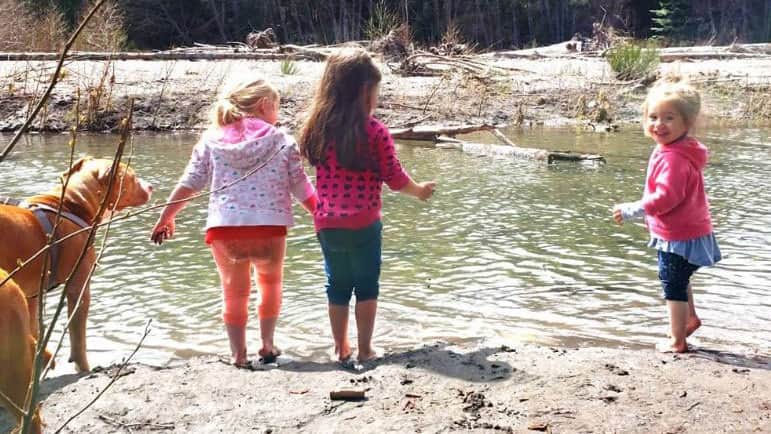 Continue down the path along the river, until you come to an opening. The water is pretty shallow here and the kids go crazy playing in the mud and sand, along with wading in the water.